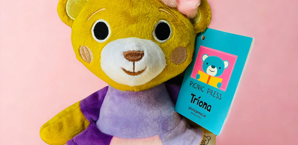 Snuggle up with Tríona, the lovable teddy inspired by the Teidí stories written by Sadhbh Rosenstock and illustrated by Ciara Ní Dhuinn.