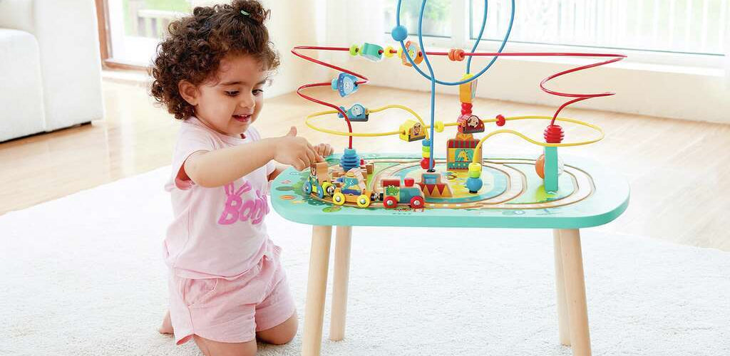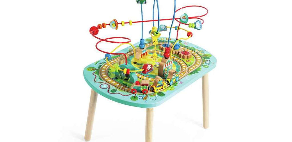 Whatβs in the box: 1 sturdy wooden activity table with built-in railway maze and movable train pieces