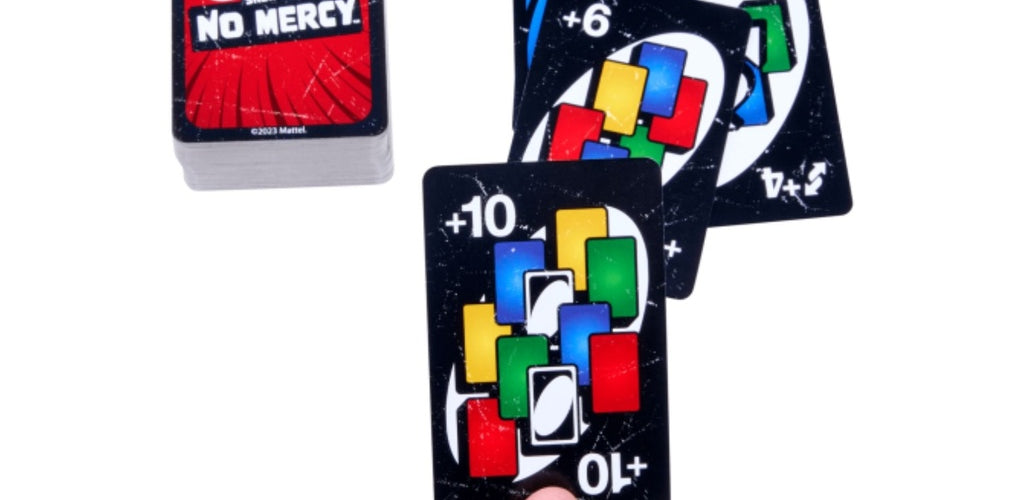 UNO Show ’em No Mercy takes the beloved classic and cranks it up to maximum mayhem. With devastating combos, outrageous penalties, and non-stop laughs, this version is pure card-slinging madness for players who dare to go all in.