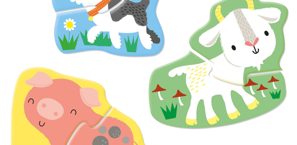 Includes four sturdy jigsaw puzzles with 9 pieces each