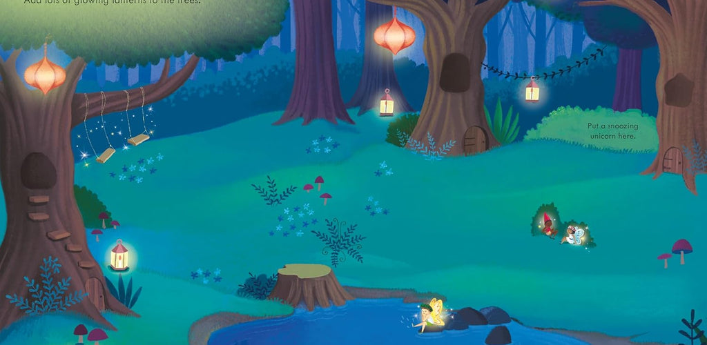 Includes sparkling stickers to decorate waterfalls, crystal caves, enchanted forests, and more