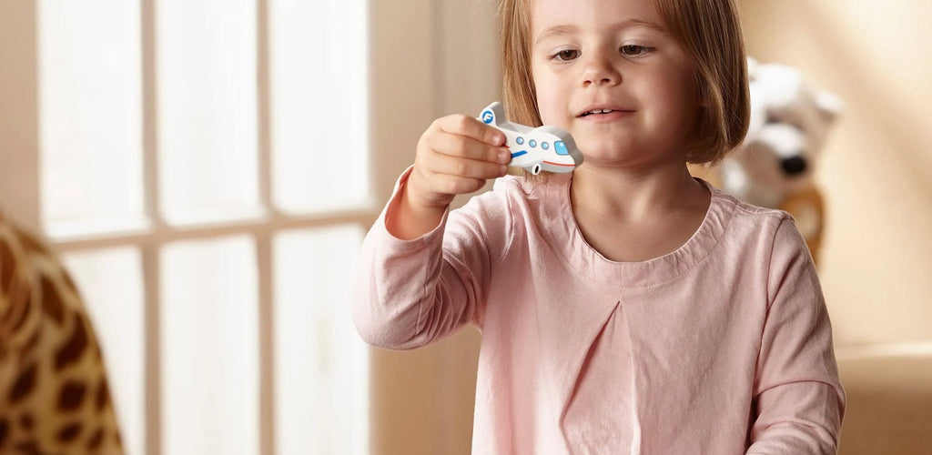 Chunky puzzle pieces are easy for toddlers to grasp, place, and stand upright for pretend play. ✈️