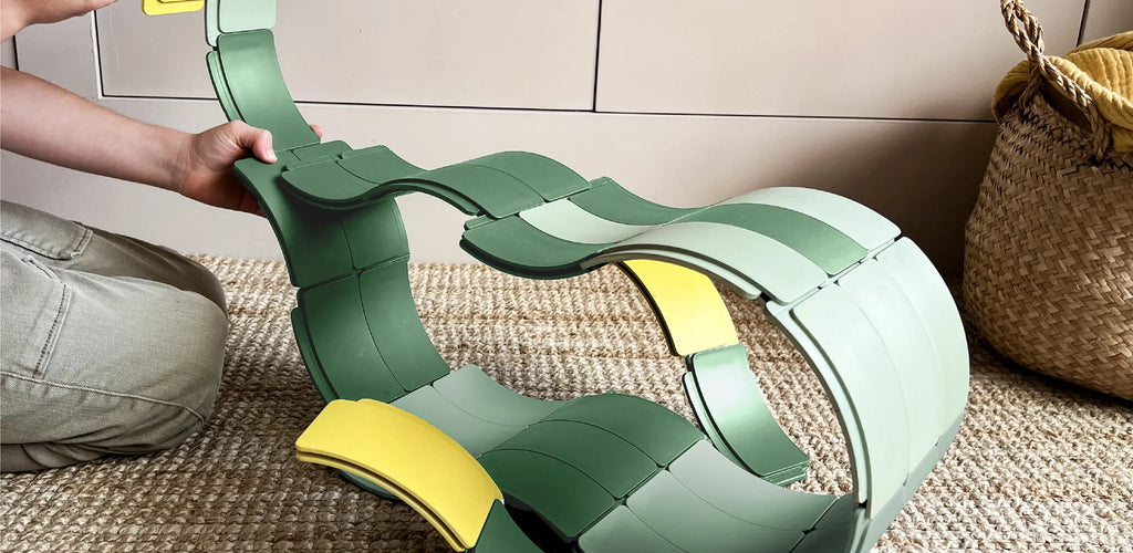Made from 100% recycled plastic in Europe, the Arches system is durable, sustainably produced, and built to last for years of play. The clever clicking mechanism works on both long and short edges, staying securely connected so kids can build stable structures that grow and evolve with their imagination.
