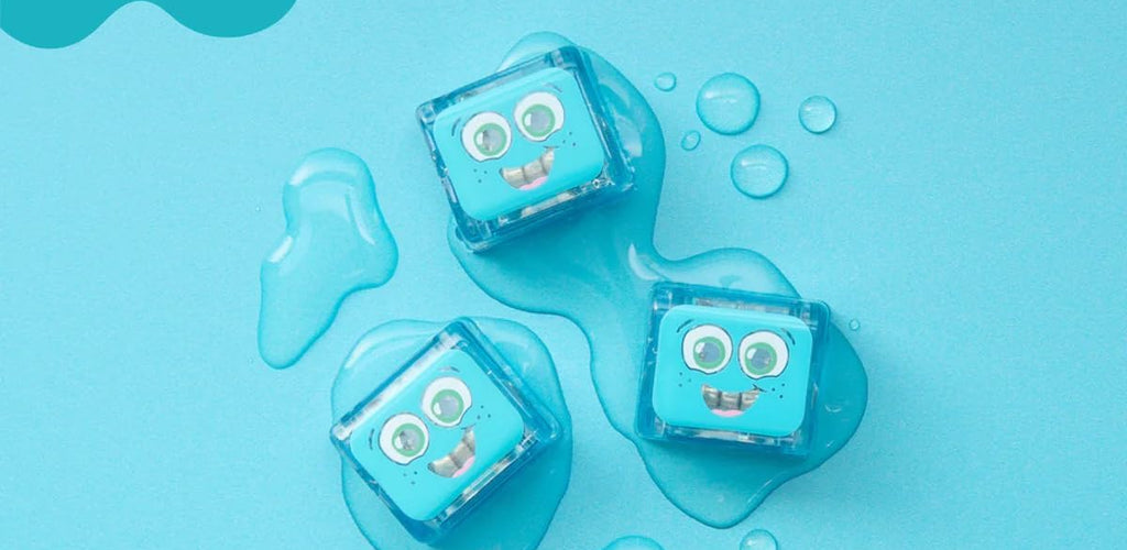 Comes with 4 blue light-activated cubes that glow when wet 🌊