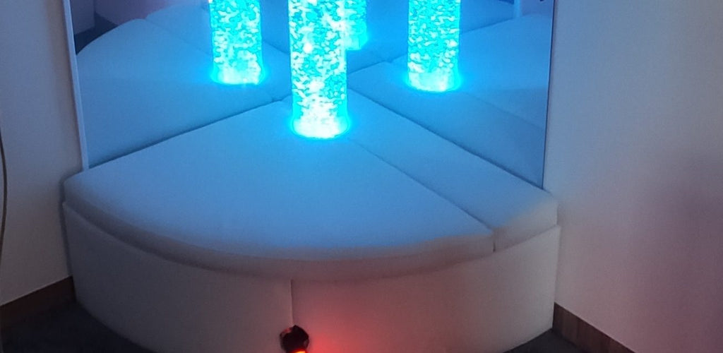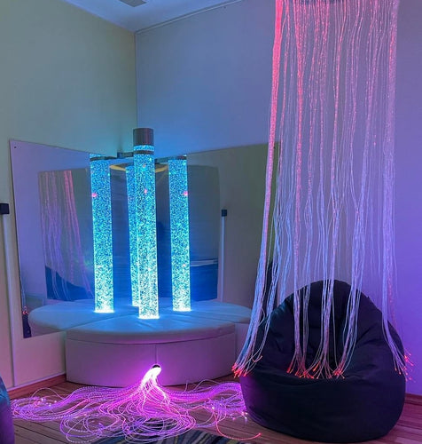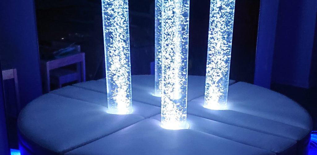A stunning sensory tube with rising bubbles and colour-changing LED lights to create a calming environment š«§