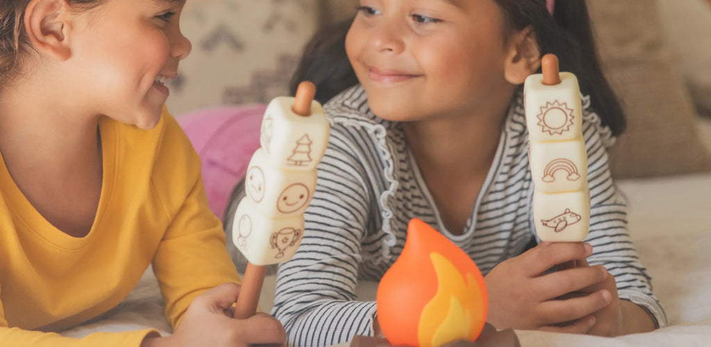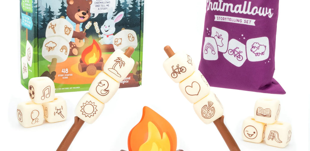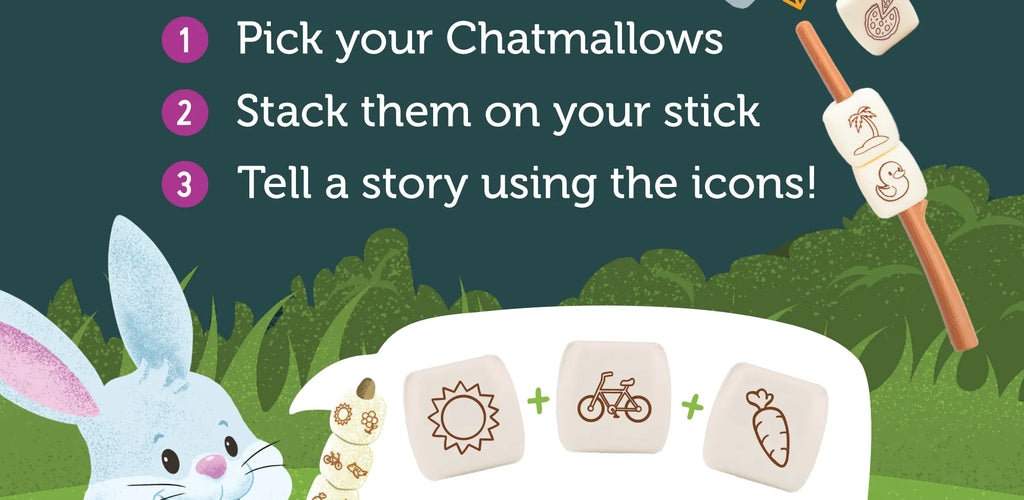 Kids stack Chatmallows on their stick and use each icon as a prompt to build imaginative stories—perfect for circle time, family nights, or morning meetings