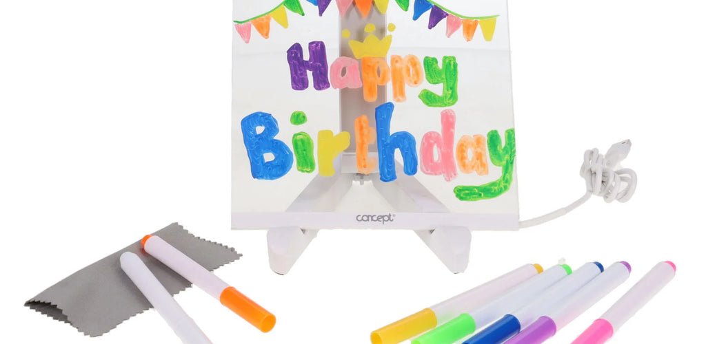 Comes with 7 vibrant markers and dust-free cleaning cloths for a complete, ready-to-use set