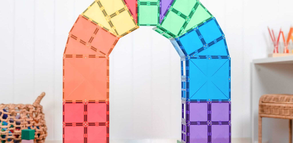The 60 Piece Rainbow Starter Pack is the perfect first step into the world of magnetic tile play. Watch your child’s ideas take shape in vivid color and endless combinations! ✨