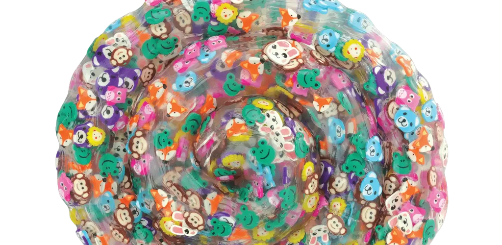 Features a clear putty filled with miniature party animals and confetti 🎉