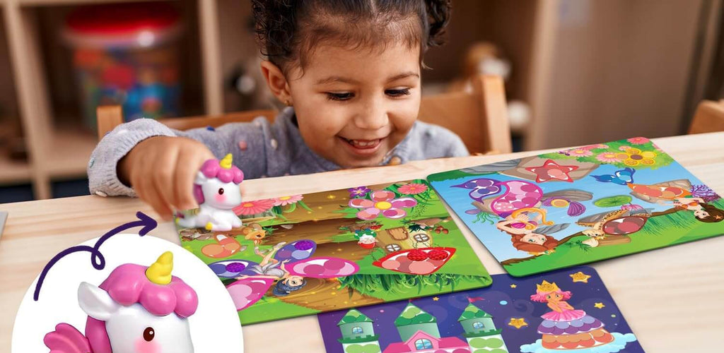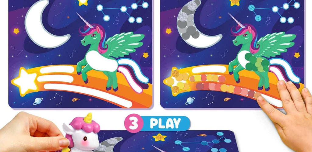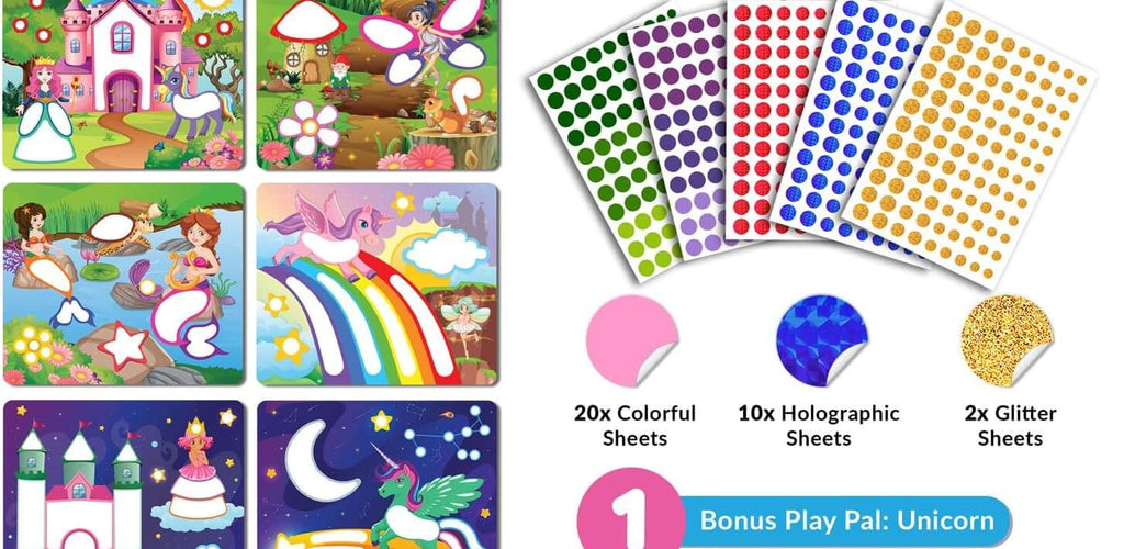 Sticker-by-number activity set with magical unicorn and princess themes. π