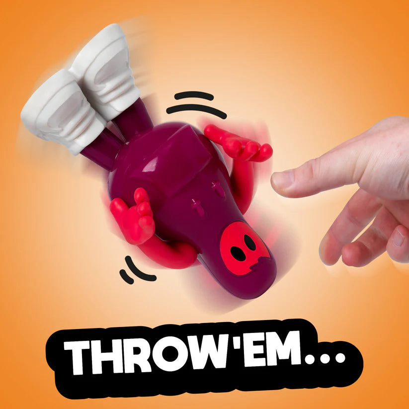 Features a soft-bodied, scented character with weighted feet to help it land upright during tricks.