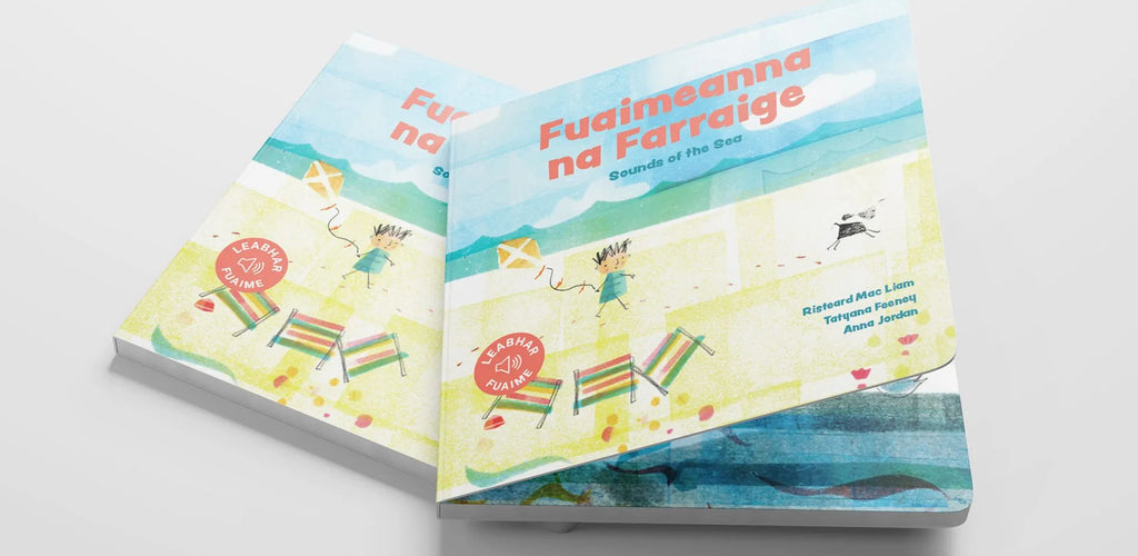 Discover the calming sounds of the sea in Fuaimeanna na Farraige, a charming Irish-language sound book. With six buttons to press, little ones can listen to seagulls, waves, and other ocean sounds.