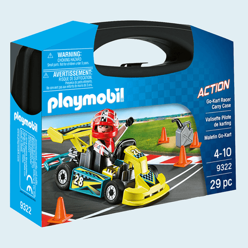 Figure can sit inside the kart, and all pieces pack away inside case for travel or storage