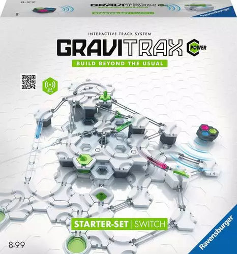 Includes a complete GraviTrax starter set with Power Switch elements, allowing marbles to change tracks at the push of a button