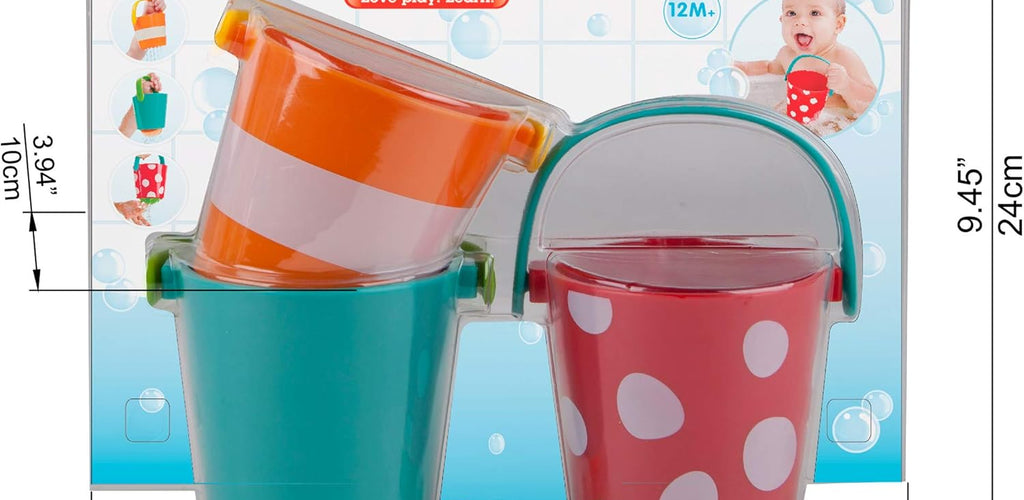 This cheerful set of bath buckets turns every splash into a new discovery. Children will love exploring how each bucket works, while parents can enjoy watching their little ones build confidence, coordination, and creativity through fun water play. 🪣