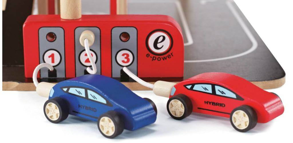 Includes two wooden cars, one helicopter, three electric charging stations, ramps, and a string-powered lift for realistic vehicle play 🚗