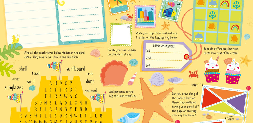Includes mazes, colouring pages, spot-the-difference, and drawing tasks