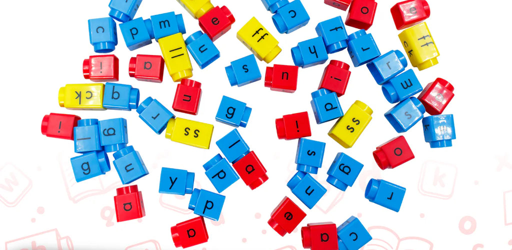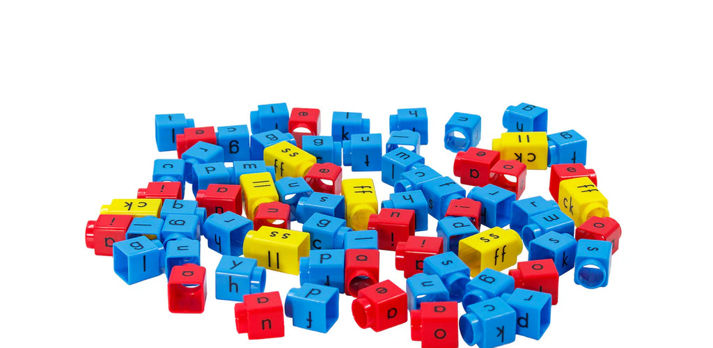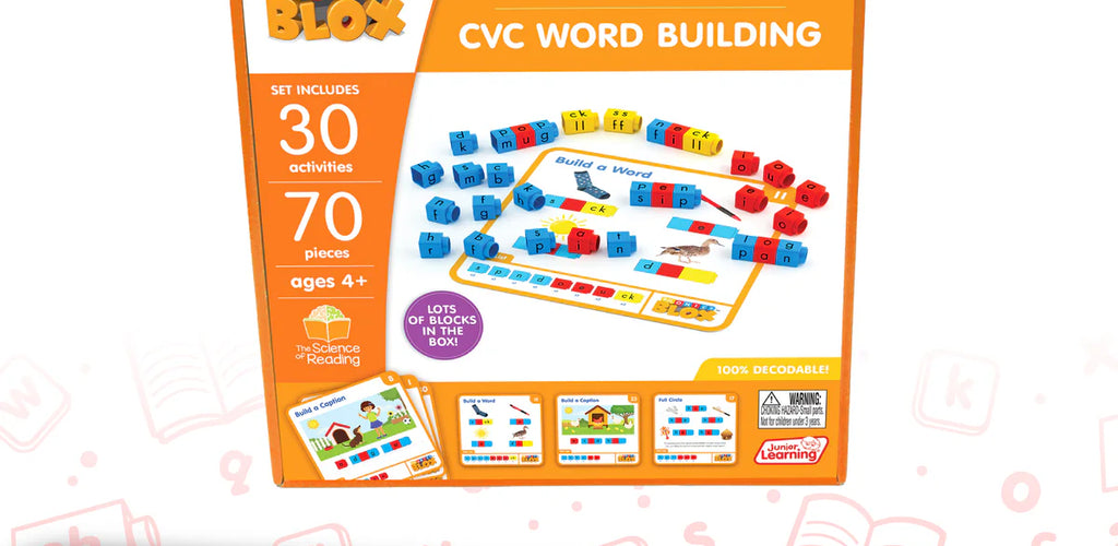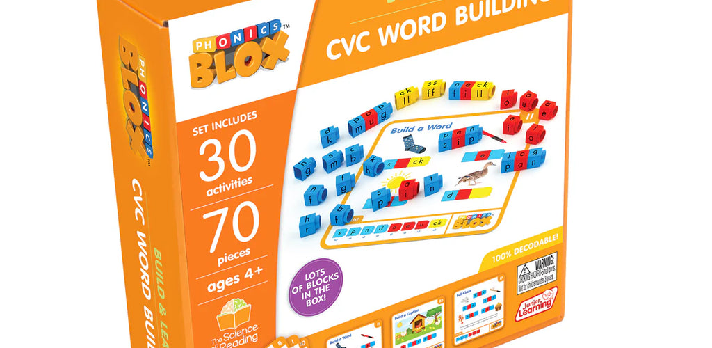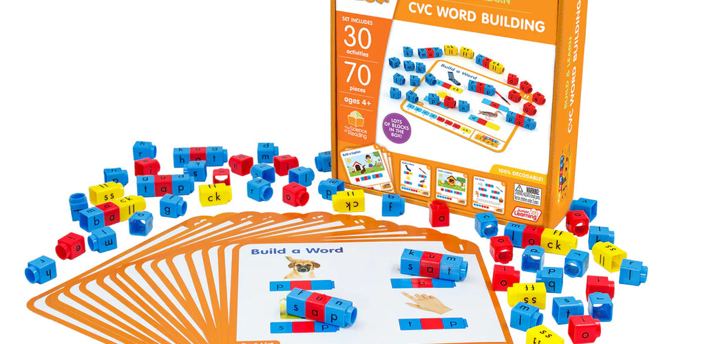 30 interlocking phoneme blox and 20 double-sided CVC word cards