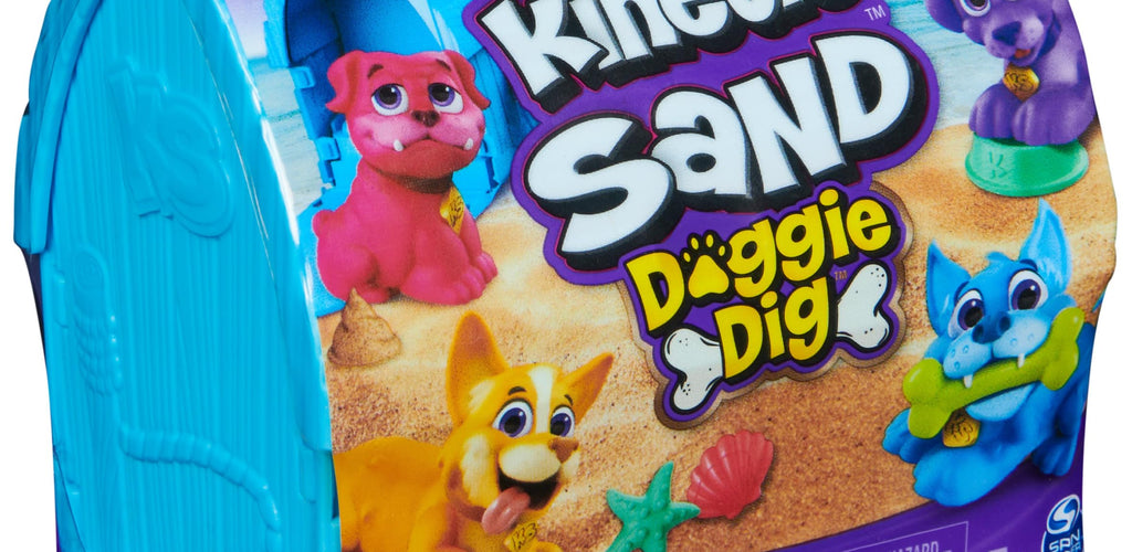 Contents: 170 g Kinetic Sand, 2 accessories, 1 puppy figure, 1 kennel container with dog bed, and a collector’s sheet