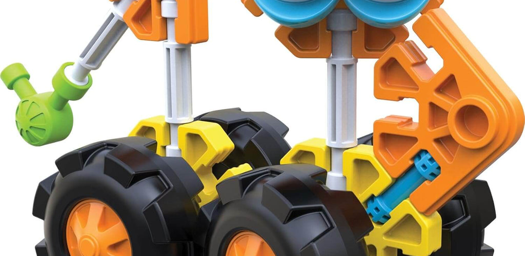 Including 116 large building pieces and a range of parts unique to Kid K'NEX including colourful eyes, spinning wheels, a tractor scoop, big feet, curly tails and more!