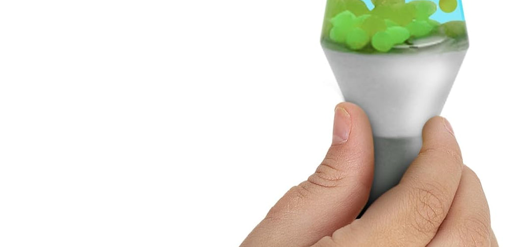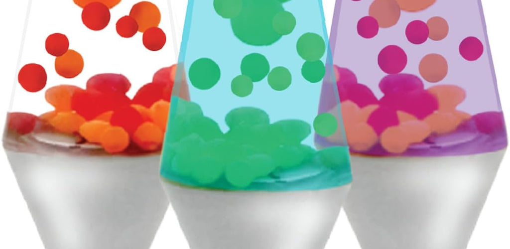 Squishy lava-lamp design filled with soft, tactile, non-toxic material.