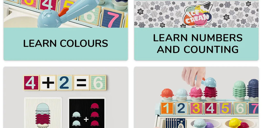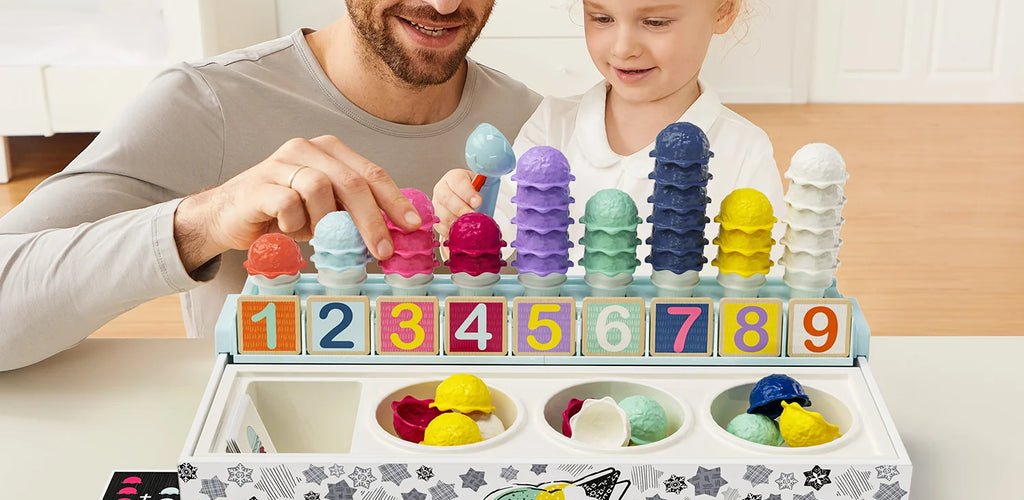 Encourages color recognition, pattern matching, and counting while playing shop 🍦