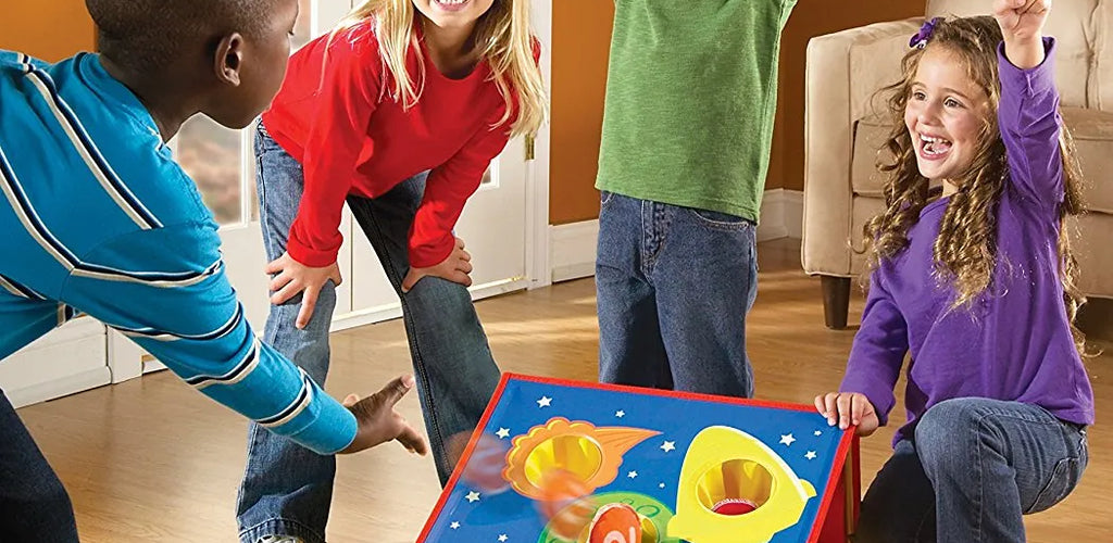 Encourages gross motor development, hand-eye coordination, and turn-taking during group play