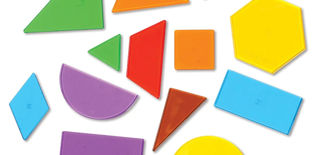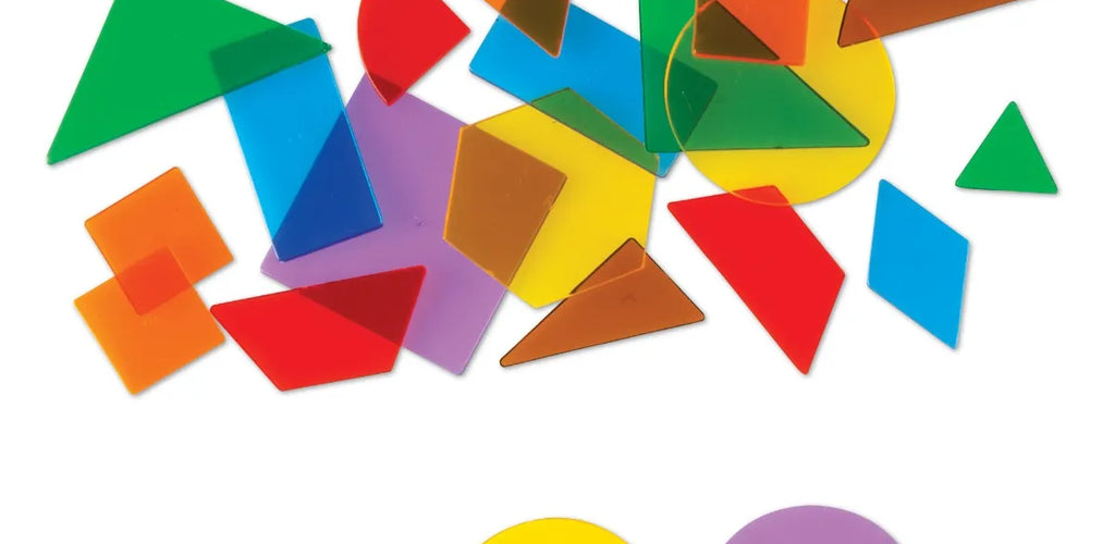 Translucent pieces are relational, allowing students to layer, overlap, and explore symmetry and patterns