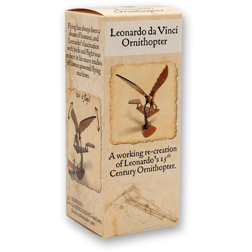Leonardo's Ornithopter design has captured the imagination of people for generations, and we have combined his cool flying machine with one of his bevel gear designs to make a neat model with flapping wings and a pilot with moving legs and arms.