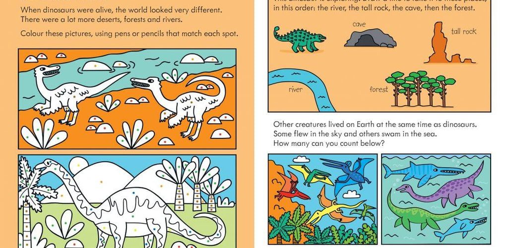 This fun-packed book invites little dino fans to explore the prehistoric world through play. With lots of activities and friendly creatures, it’s both educational and exciting 🦖