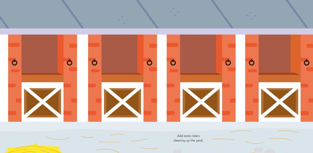 Includes scenes of stables, riding lessons, countryside trails, and shows