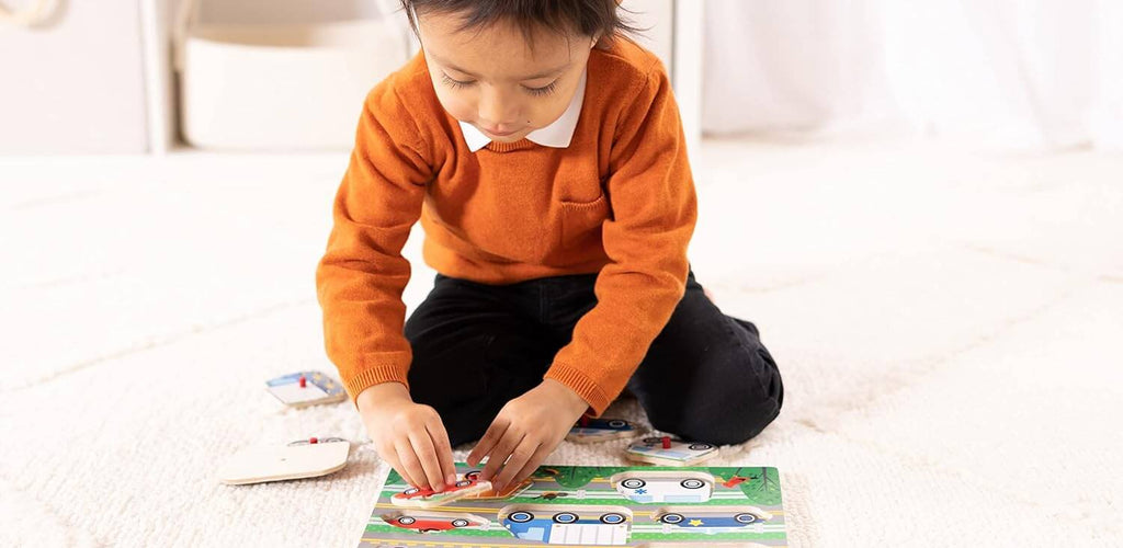 The Melissa & Doug Vehicles Wooden Peg Puzzle introduces little ones to the exciting world of transportation. With bright colours, chunky pegs, and fun vehicle shapes, it makes learning and play come together beautifully. 🚂