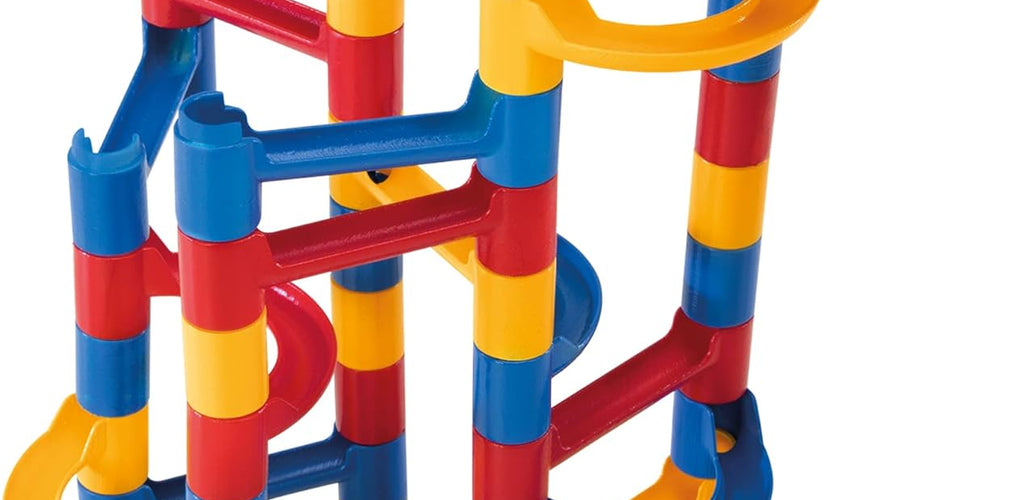 This is a compact marble run set that lets kids build twisting tracks and race marbles 🟠