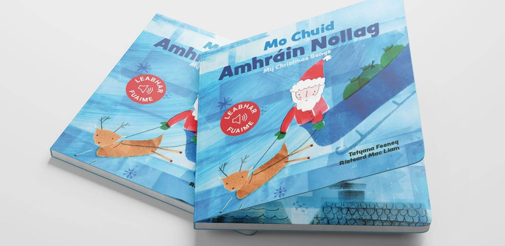 Interactive Irish-language Christmas sound book featuring 6 festive favourites, including Daidí na Nollag, Trí Rí ag Leanúint, and I Leataobh i Mainséar. 🎶