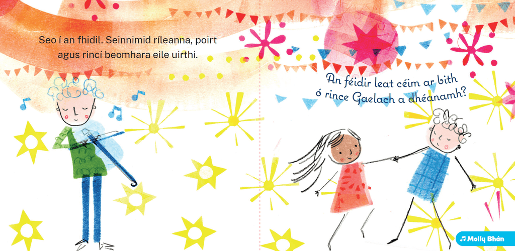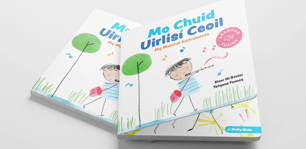 Let your child explore the soundscape of Ireland with this delightful book. Mo Chuid Uirlisí Ceoil nurtures listening skills, cultural pride, and a love of music from an early age.
