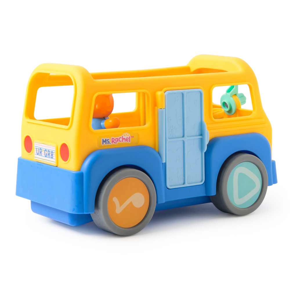 Official Ms. Rachel musical toy bus that plays the beloved “Wheels on the Bus” song when Ms. Rachel takes the driver’s seat. 🚌