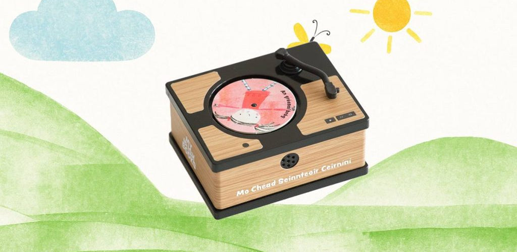 Exclusive mini record player designed to bring My Irish Books sound books and music discs to life.