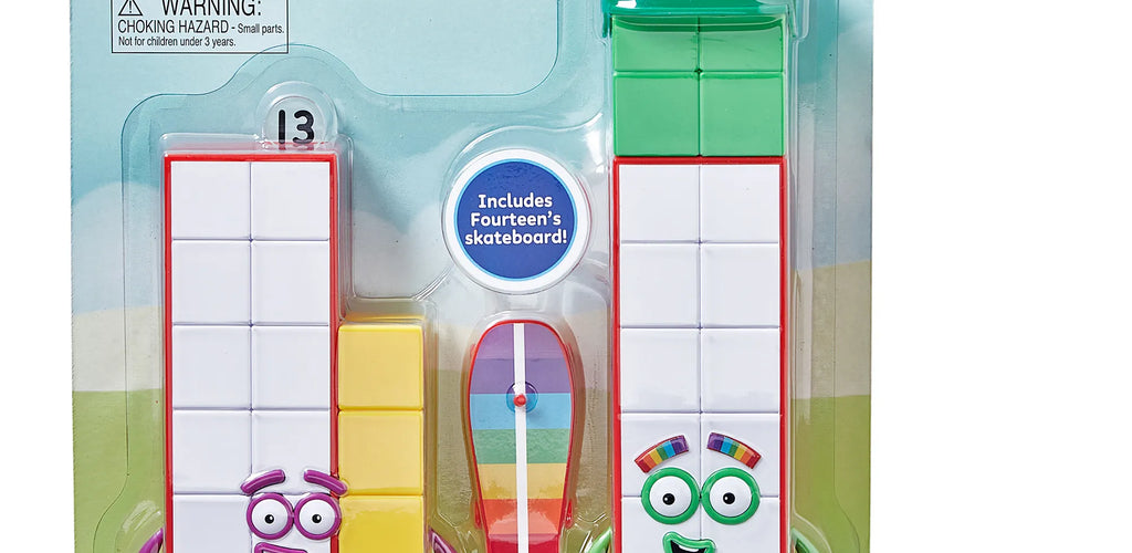 Brings the teen numbers to life: Thirteen the “unlucky” Numberblock and Fourteen the fearless skateboarder, perfect for imaginative storytelling and math-based role play