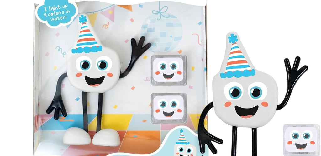 Itβs party time in the tub! The Party Pal character brings sparkle and energy to every splash. With light-up cubes that flash and glow, it turns ordinary water play into a celebration of creativity and fun.