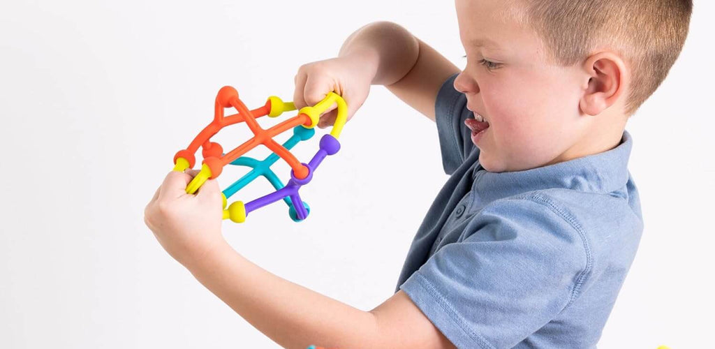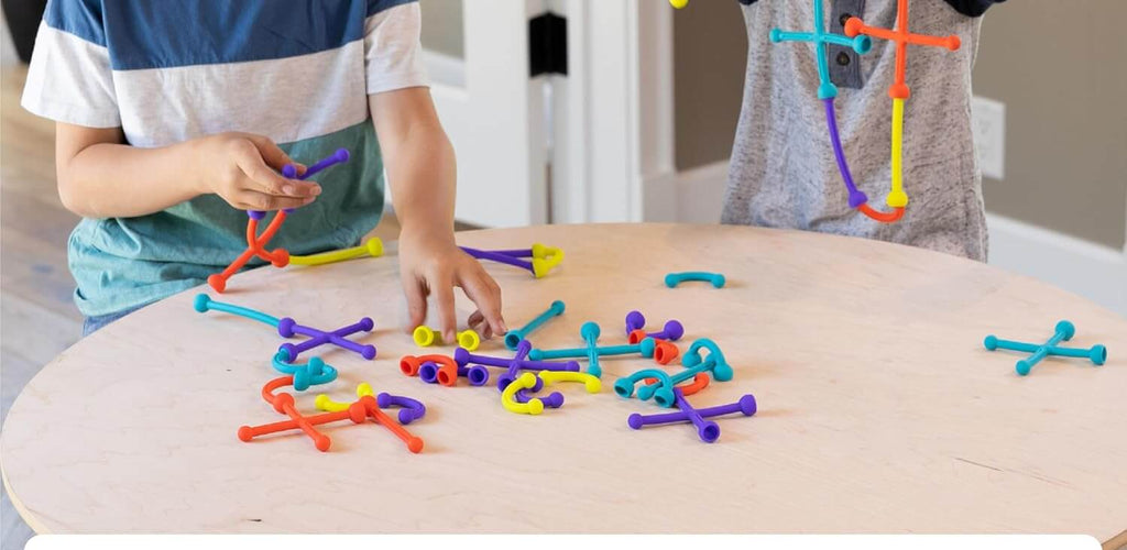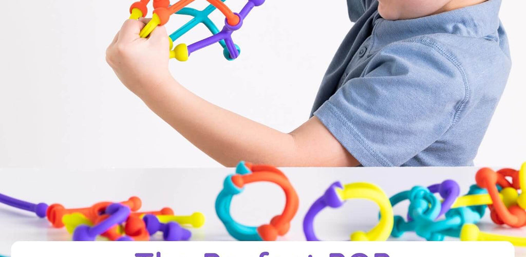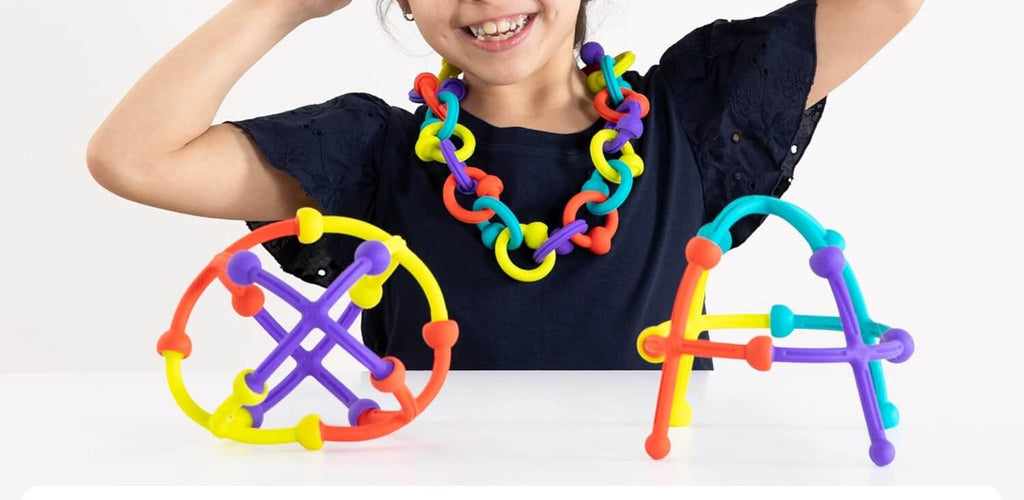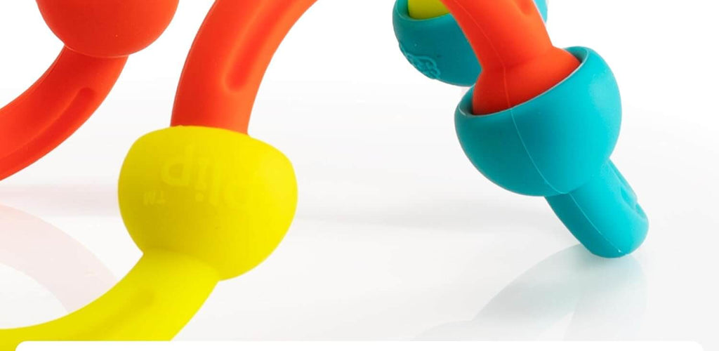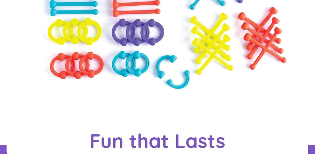 Combines textures, stretch, and satisfying clicky connections to engage little hands.