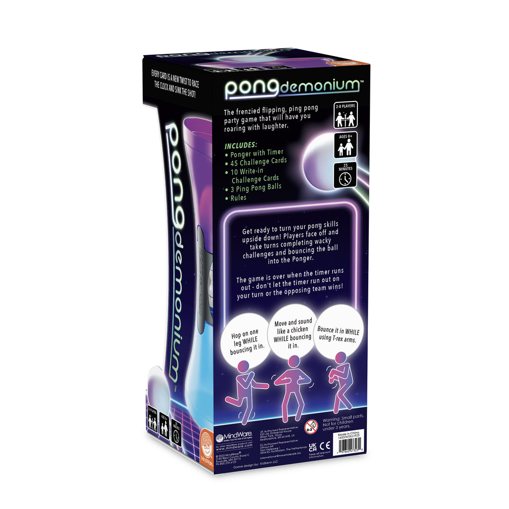 Get ready to laugh, bounce, and race the clock with Pongdemonium—the ultimate mash-up of silly challenges, fast reflexes, and high-energy action! Players take turns tackling wild tasks from the challenge cards—think hopping, spinning, or showing off your best dance moves—then aim to bounce a ball into the Ponger. Here’s the twist: as soon as you finish your turn, flip the Ponger to start the built-in timer for the next player. The clock is ticking, the pressure is on, and the chaos is contagious!