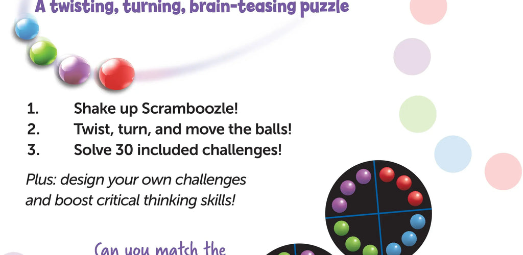 The Scramboozle Puzzle Ball is a clever, colorful challenge that keeps young minds engaged. With every twist and slide, children strengthen their thinking skills while enjoying hours of fun. A smart, portable puzzle that blends learning and play seamlessly. ✨
