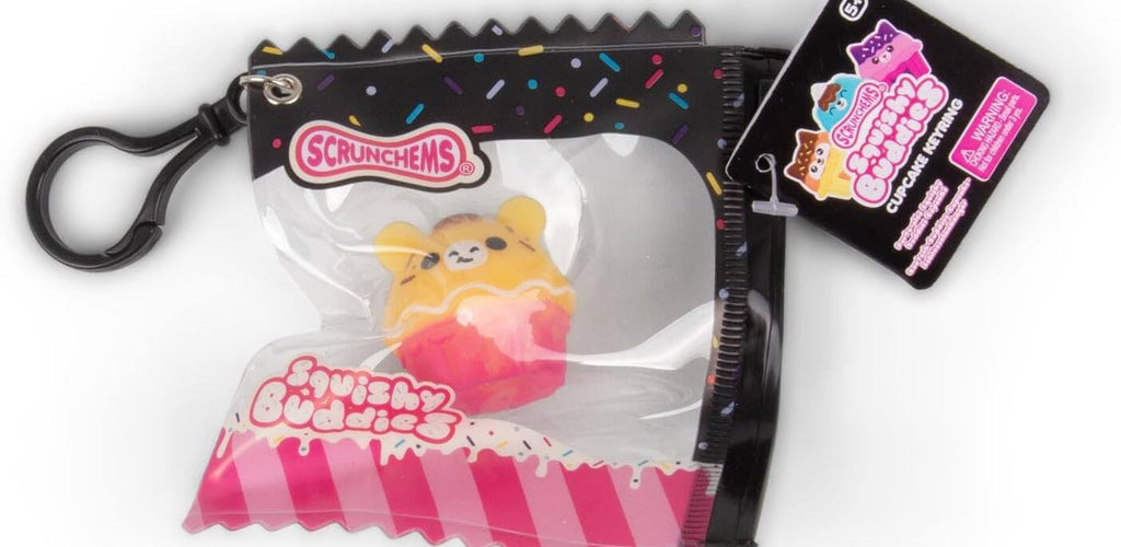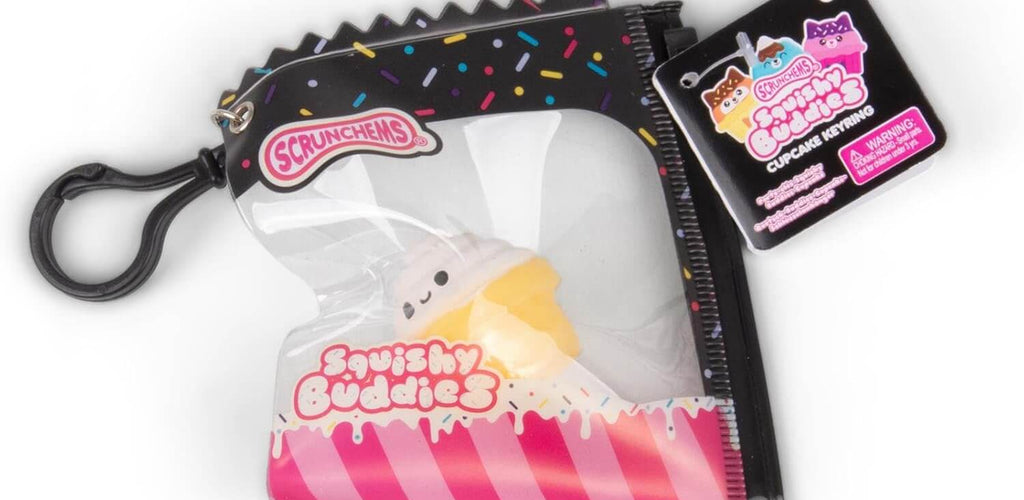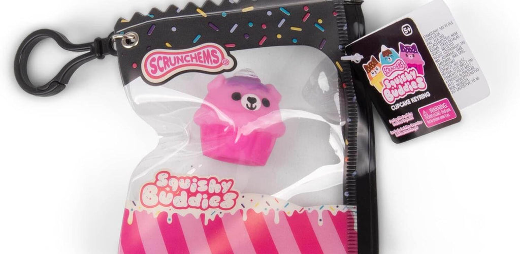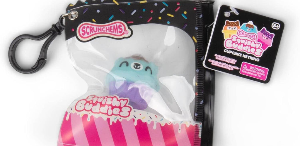 Available individually in a variety of designs and colours, each Scrunchems Squishy Buddies Cupcake Keyring is selected at random, adding a fun surprise to every order.