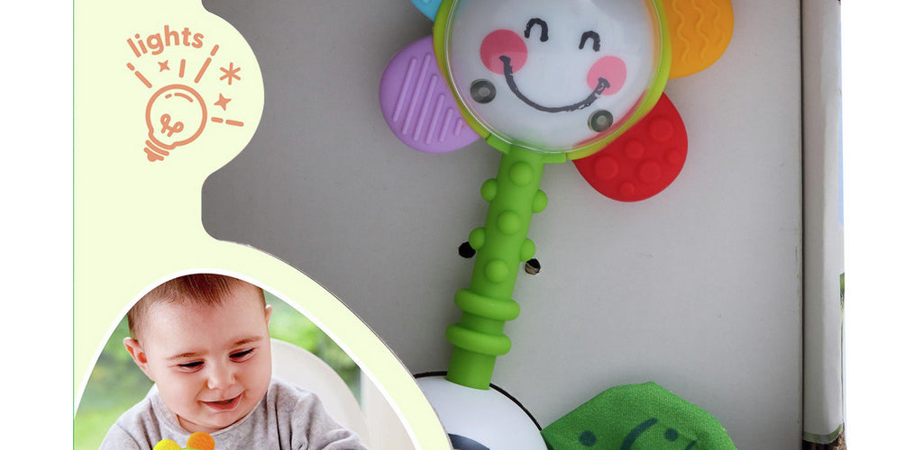 Features five textured petals that encourage tactile play and sensory exploration