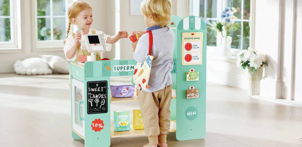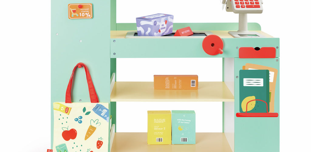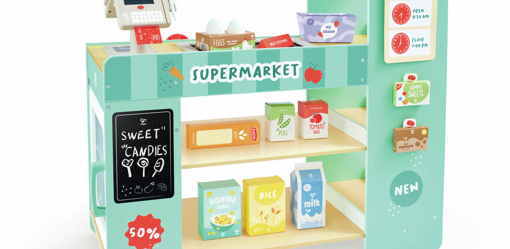 Wooden role-play supermarket set designed for children ages 3 and up π