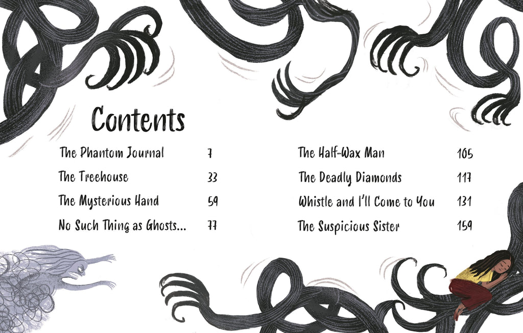 Chapters: The Phantom Journal, The Treehouse, The Mysterious Hand, No Such Thing as Ghosts..., The Half-Wax Man, The Deadly Diamonds, Whistle and I’ll Come to You, The Suspicious Sister.