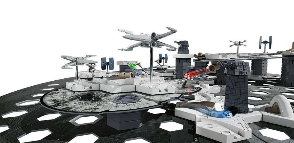 Features unique Death Star baseplate, magnetic cannon, X-Wing and TIE Fighters