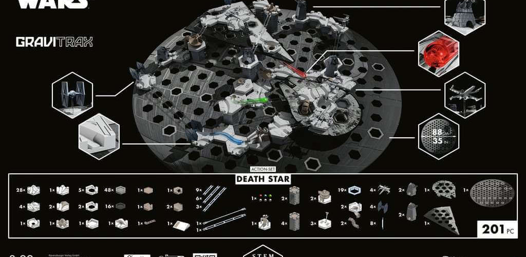 Feel the Force as you construct wild marble run missions with the GraviTrax Death Star Action Set! With over 190 premium-quality pieces and themed elements like the Millennium Falcon and Star Destroyer tiles, kids and Star Wars fans alike can unleash their creativity. A perfect gift for builders who dream in galaxies far, far away 🚀