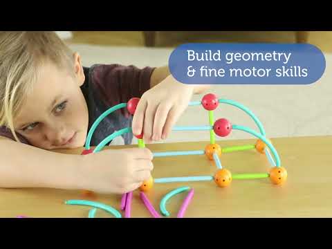 Includes 58 durable pieces: straight sticks, curves, and connectors for constructing both 2D and 3D shapes