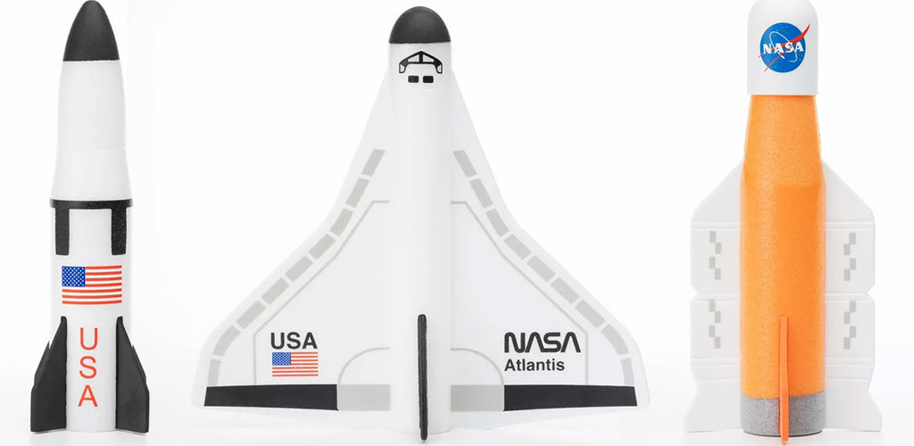 Includes 3 officially licensed NASA spacecraft: SLS Rocket, Space Shuttle Atlantis, and Saturn V, each crafted from durable lightweight foam. 🚀
